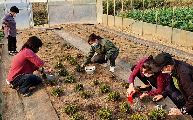 2021년에는 총 10명의 성인발달장애인이 참여를 희망하여 주 2회 영농활동 교육 및 직업기초교육을 진행하였습니다. 텃밭 가꾸기, 상추, 고추, 토마토, 오이, 감자 등 시기별 모종 심기, 작물 관리, 재배 및 수확 등 전반적인 영농활동을 배울 수 있었습니다. 코로나19 상황에도 직업훈련이 이루어질 수 있도록 비대면 교육체계를 구축하여 모임이 어려울 시에는 비대면 교육을 실시하였습니다.