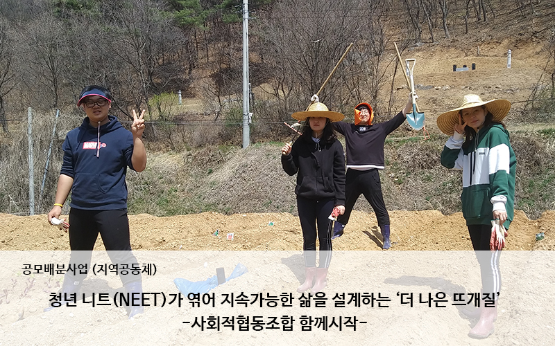 사회적협동조합 함께시작에서 생각한 NEET 청년을 감소시키는 방법은 청년들이 가지고 있는 ‘경쟁과 낙오’라는 생각의 도식을 ‘상생과 공존’이라는 가치로 대체하는 것과 그런 가치를 구현해 낼 수 있는 사회적 일자리들이 현실에서 지속가능하게 존재하는 것을 보여줌으로써 그 청년들이 스스로 이런 사회적 일자리에 진입하게 하는 것이라고 생각했습니다.