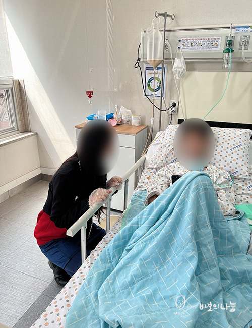 "2023년 10월 청주에서 캄보디아 노동자가 쓰러져 중환자실에 입원 중이라는 연락을 받았습니다. 당시 의식은 있으나 말을 하지 못하고 손도 움직이기 어려운 상황이었습니다. 청주에 있는 이주민지원센터에 연계를 요청하고 캄보디아 통역선생님, 청주이주민지원센터 소장님과 노동자를 찾아갔습니다. 말을 할 수 없는 상태라 대신 본국 가족들과 연락하여 상황을 전달하였습니다. 다행히 노동자가 젊고 의지가 강하여 치료를 잘 받고 2024년 5월부터 조금씩 말도 하고 걸을 수 있게 되었습니다. 다만 일은 하기 어려운 상황이라 사업장과 합의 퇴사하여 본국에서 건강관리를 하기로 결정하였습니다."