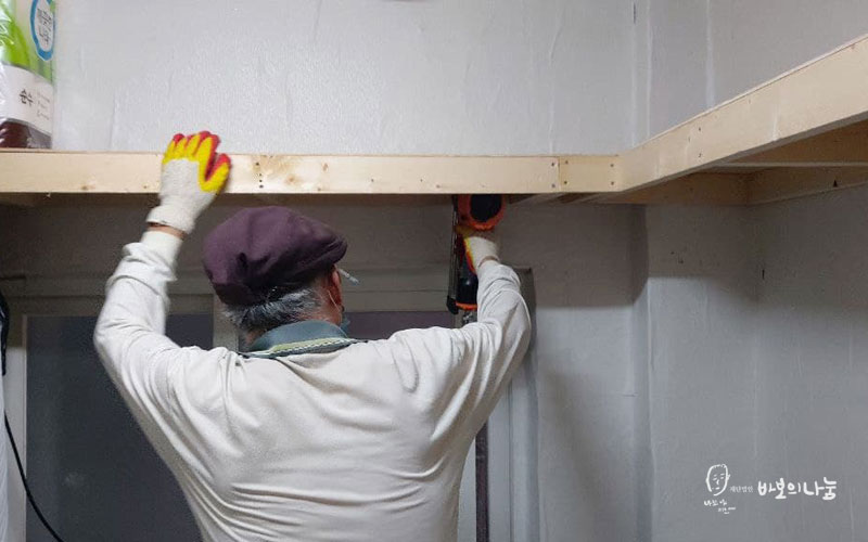 1~2평 남짓한 쪽방에는 짐을 놓을 공간이 마땅치 않습니다. 그러다 보니 항상 짐이 가득한데요. 손재주가 좋은 주민들이 선반을 만들어주는 선반지기가 되었습니다. 2020년에는 총 12분에게 좁은 방이 한층 넓어지는 선반을 만들어 드렸습니다.