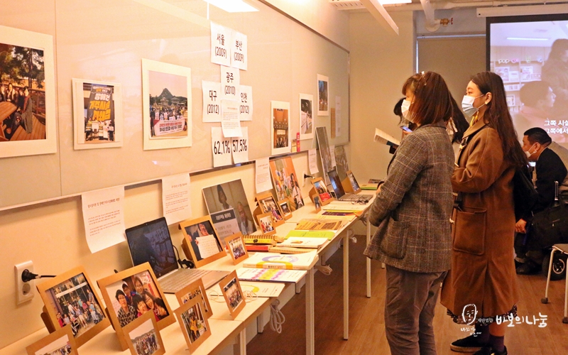 ‘장애와인권발바닥행동’ 15주년 기념행사 ‘살아있다’에서는 기록 모임을 통해 엮어낸 역사자료집을 배포하고, 영상 및 사진, 기록물 기획 전시를 통해 많은 사람에게 장애인의 인권과 탈시설 운동을 알렸습니다.