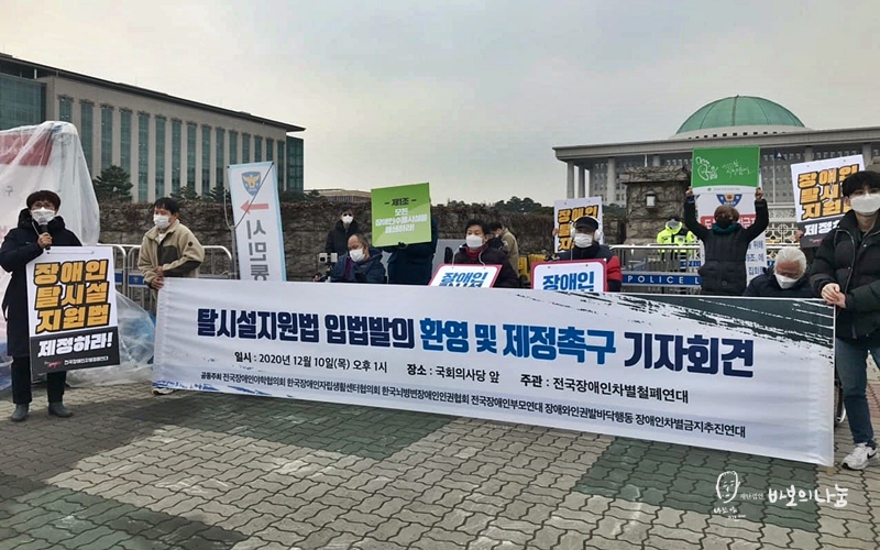 이 변화의 시작으로 2020년 12월 10일 세계 인권선언의 날, 국회에 탈시설지원법이 입법 발의 되었습니다.