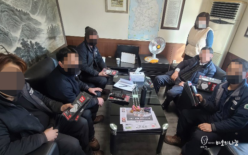 <이주 노동자의 작업 현장에 방문하여 전달해드렸습니다>