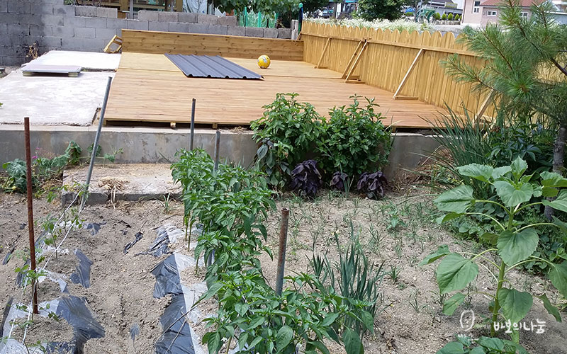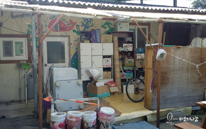 놀이터로 사용되던 테라스는 오래되어 못이 튀어나온 곳도 있어 아이들이 뛰다 찔릴 수 있는 위험이 있었고, 바로 옆 보일러실은 곧 무너질 수도 있어 아이들도 고쳐달라고 직접 이야기하던 적이 많았습니다. 그렇기 때문에 시급히 철거 후 새로운 공간을 마련하기로 했습니다.