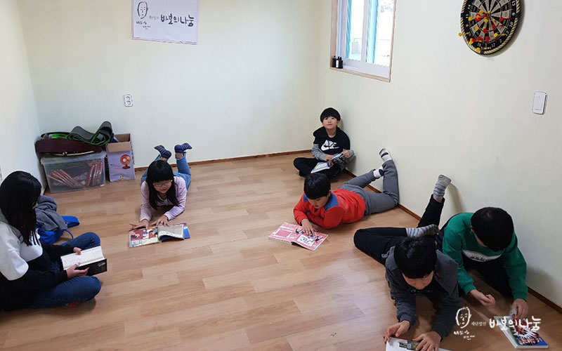 <책도 읽고 탁구도 치며 함께 시간을 보내는 아이들>