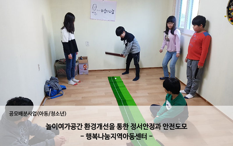 | 2019 | 행복나눔지역아동센터 | 놀이여가공간 환경개선을 통한 정서안정과 안전도모 | 10,000,000 |
