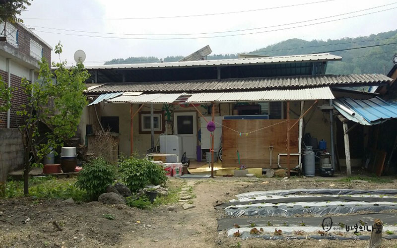 센터는 4개의 방으로 이루어져 있지만 모두 협소하여 집단 프로그램을 진행하기가 어려웠습니다. 아이들의 놀 권리를 위해 매주 목요일을 마음껏 노는 날로 정했으나 적절한 공간이 없을 때가 많았고, 악기 수업을 할 때는 소리도 방해를 받지만 오밀조밀 부딪혀 가며 수업을 받았습니다. 그리고 센터 뒤편에는 놀이터로 사용되던 테라스가 있는데 노후가 심하고 지붕도 날아가 아이들의 정서에 좋지 못한 환경이 되었을 뿐만 아니라 센터와 도로의 경계선이 되는 담장이 없어서 농사철에는 외지 사람들이 불쑥 들어오기도 합니다.