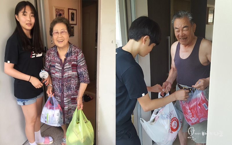 <도시락을 각 가정에 직접 배달하는 자원봉사자>