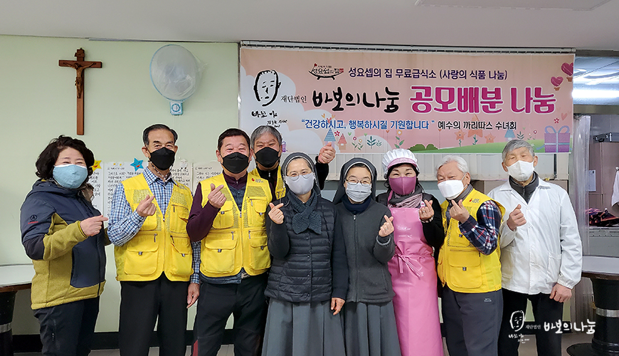 소외된 이웃에게 따뜻한 식사를 제공하는 전국의 무료급식소도 큰 타격을 받았습니다. 집합 금지 조치로 인해 식사를 제공했던 급식소의 문을 닫아야 했고, 자원봉사자도 모일 수 없어 밑반찬 도시락도 만들기 어려웠습니다. 하지만 하루에 한 끼, 무료급식소에서 제공하는 식사가 하루 식사의 전부였던 이웃들을 위해 손 놓고 있을 수만은 없었습니다. 바보의나눔은 2021년과 2022년 특별배분을 통해 전국 무료급식소 중 지원이 필요한 무료급식소를 지원하였고, 그 중 광주광역시 남구에 위치한 무료급식소인 '성요셉의 집'도 2021년도 특별배분을 통해 지원을 받았습니다. 이어 2022년 바보의나눔 공모배분사업에 '성요셉의 집 무료급식사업'을 신청하였고, 외부 평가위원의 심사를 통해 선정되어 2년간 연속해서 지원할 수 있게 되었습니다.