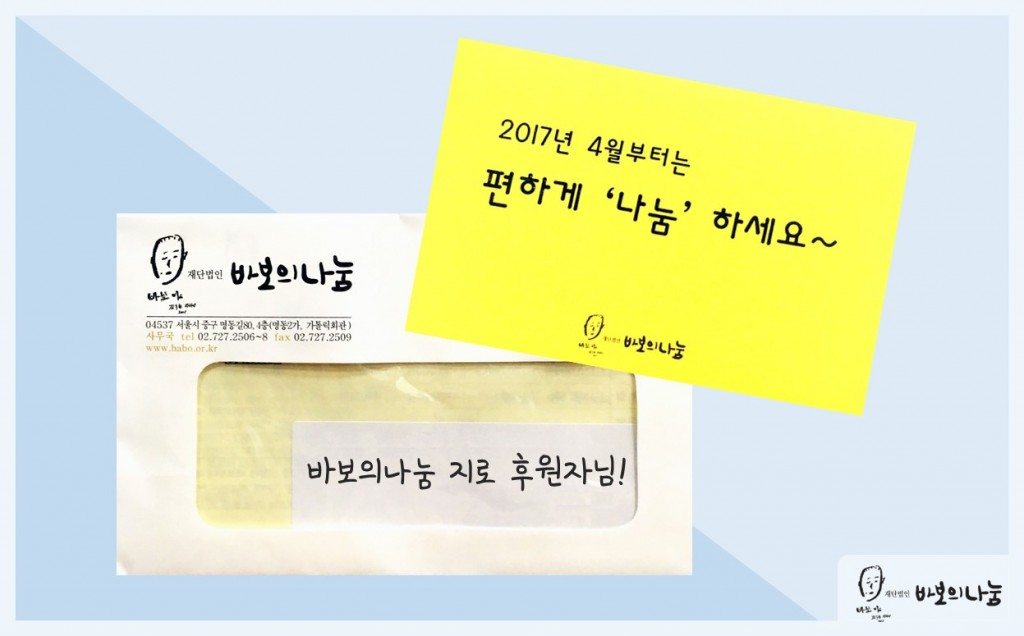 덤으로 바보의나눔이 납부방법 변경해 주시는 분들을 위해 작은 선물 하나 준비해 드렸는데요,
