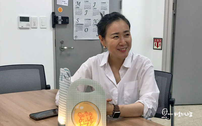 창업 후 지금까지 3년이라는 기간 동안 다양한 생각과 아이디어를 제품으로서 완성하신 최영주 대표님을 뵐 수 있었습니다. 앞으로 최영주 대표님과 여러 브랜드가 만들어내는 빛을 우리 주위 소외된 이웃에게 전달하는 것에 바보의나눔은 더 막중한 책임감을 느끼게 됩니다. 바보나눔터를 통해 대표님의 따뜻한 마음이 더 많은 사람들에게 전달될 수 있도록 바보의나눔이 더 열심히 노력하겠습니다. ?