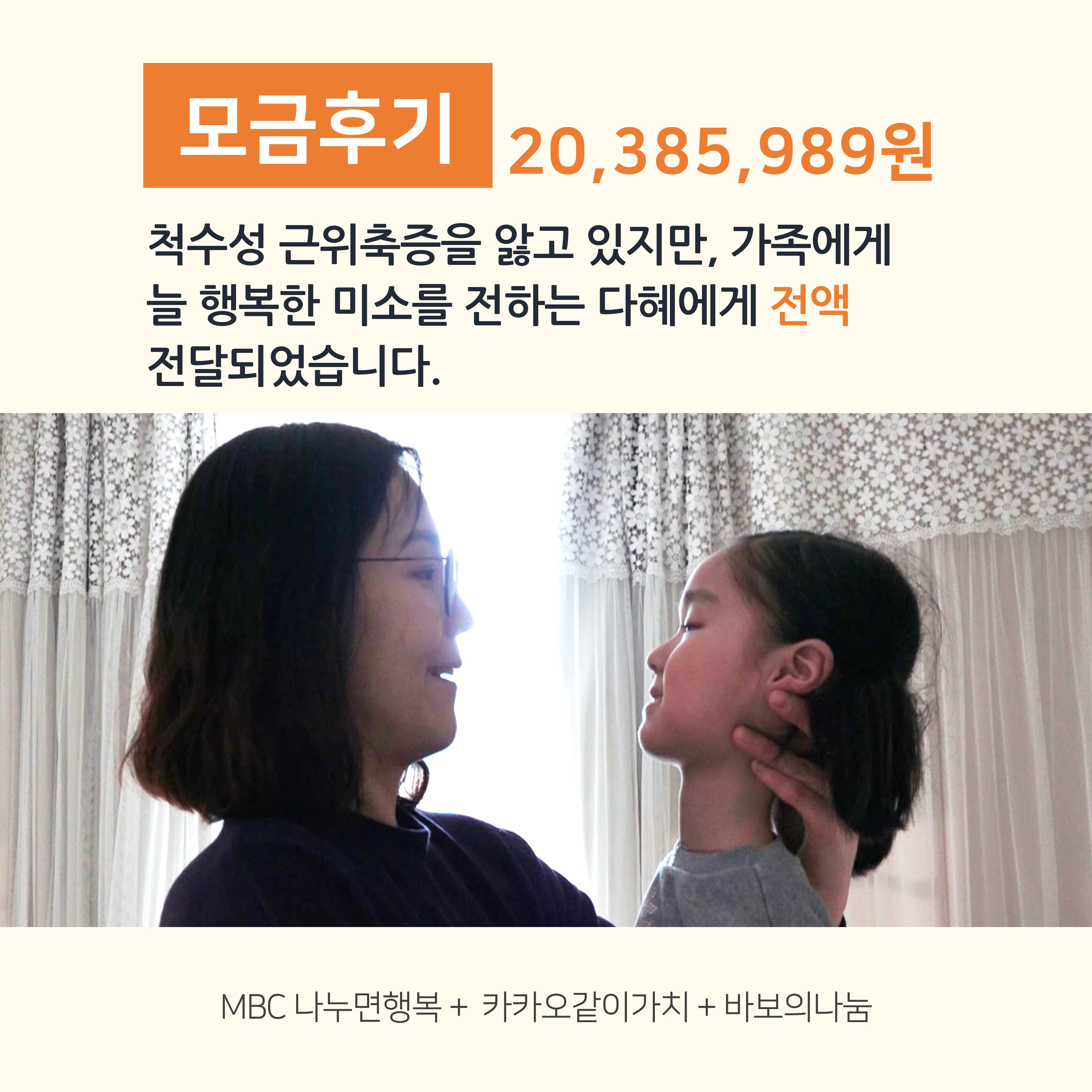 “진행되는 병이라 해줄 수 있는 게 없어서 속상했는데 여러분들의 도움으로 치료도 많이 받고, 희망이 생겼습니다.