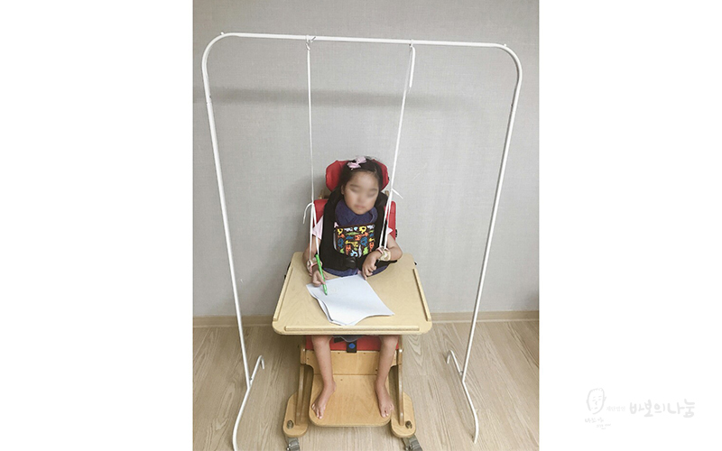하지만 지금은 기부자님의 도움으로 휠체어 유모차, 휠체어 맞춤 이너의자 등을 구입하고 재활에 더 힘쓸 수 있게 되었는데요. 이전에는 몸에 힘이 없었기 때문에 일반 의자에 앉으면 수업이 거의 힘들었습니다. 요즘은 이너의자 덕분에 자세가 교정이 되어 공부하기가 훨씬 수월해졌다고 합니다.
