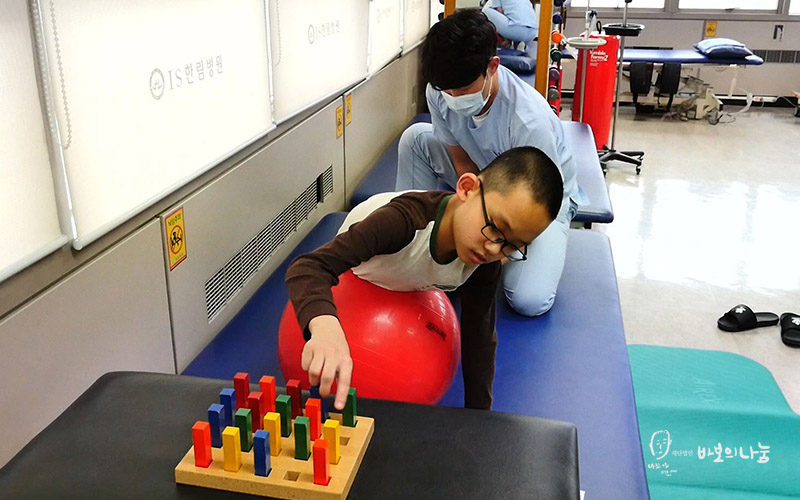 그렇게 어려운 형편으로 치료를 중단했었지만, 기부자님의 도움으로 준규는 치료를 다시 시작했습니다. 그러자 준규가 달라지기 시작했습니다. ‘엄마’ 소리도 못했지만 지금은 의사 표시도 거의 대부분 하고 간단한 단어는 쓸 줄 알게 되었습니다.