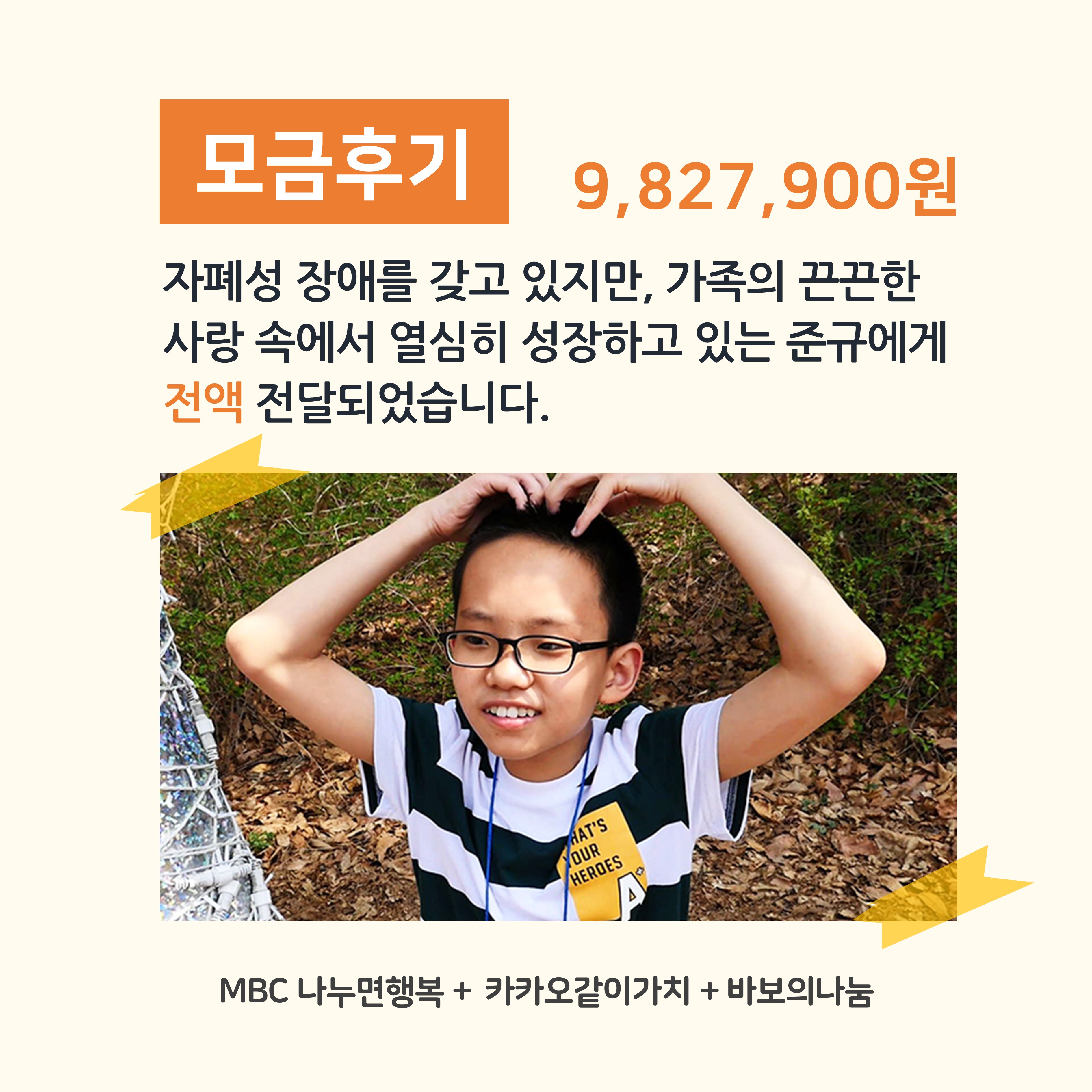 앞으로도 준규와 준규 가족의 더 밝은 내일을 응원합니다.