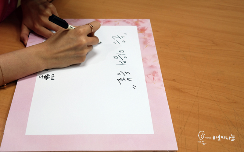 <응원 메시지를 적는 모습>