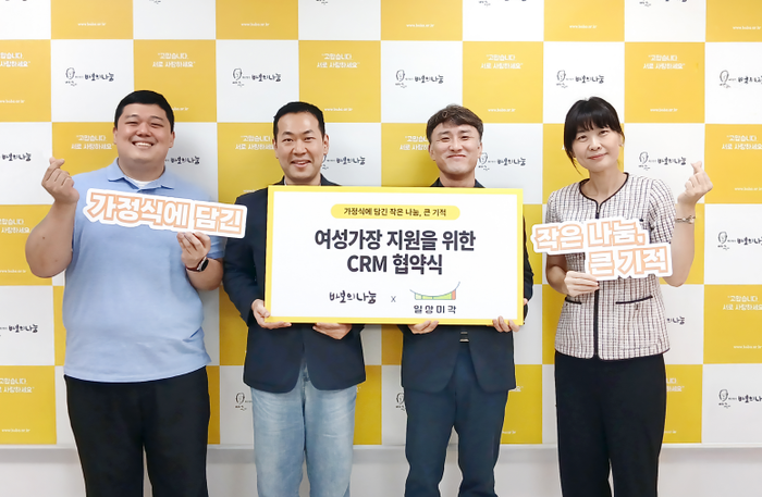 ▲일상미각 CRM 협약식(왼쪽부터 일상미각 김종만 부장, 박준형 대표, 바보의나눔 상임이사 김인권 신부, 이윤나 부장)