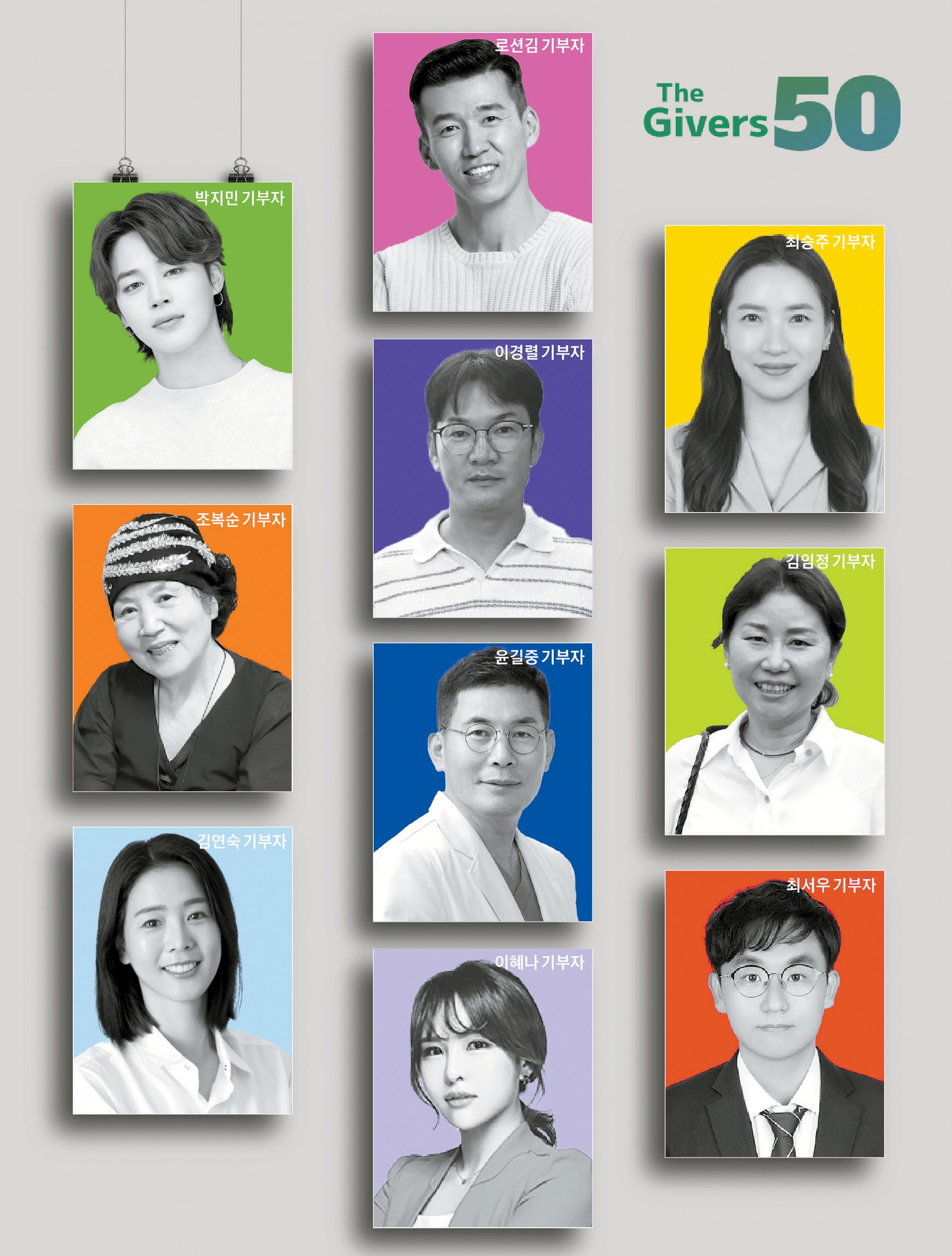 ‘한국의 기부자들: The Givers 50’(이하 더기버스50)의 다섯 번째 명단이 16일 공개되면서 올해 더기버스 최종 50인이 모두 선정됐다. 5차 명단에는 김연숙·김임정·로션김·박지민·윤길중·이경렬·이혜나·조복순·최서우·최승주 등이 이름을 올렸다.