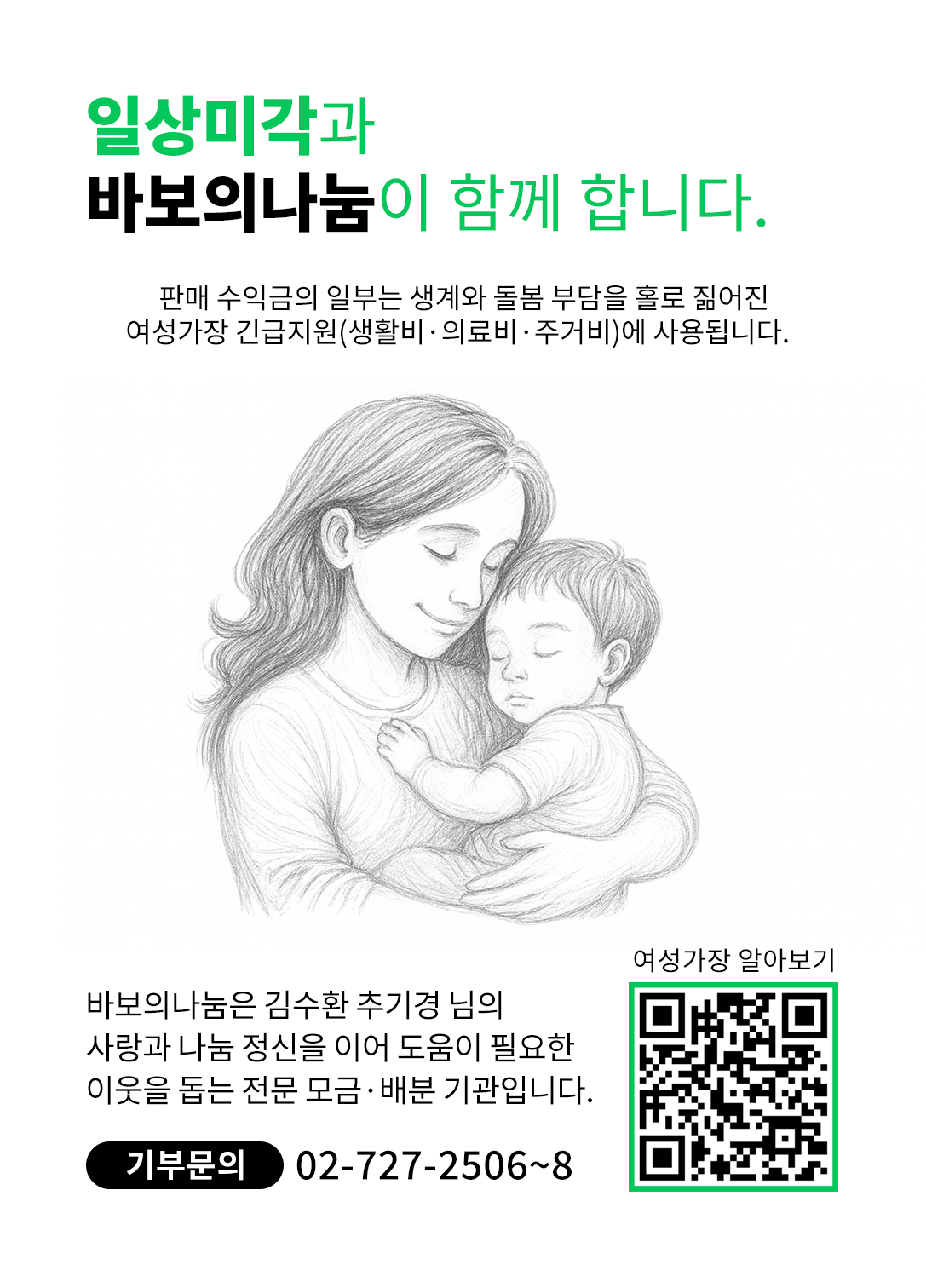 이번 협약을 통해 2025년 9월부터 12월까지 4개월간, 일상미각의 제품에는 바보의나눔 로고와 기부 메시지가 함께 담기게 됩니다.